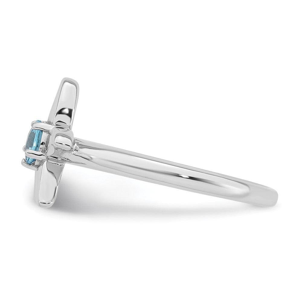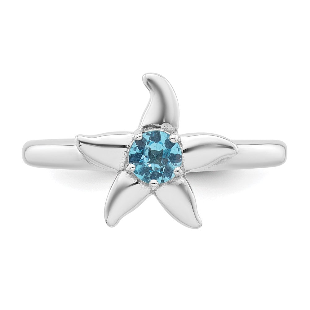 Sterling Silver Rhodium-plated Polished Round Light Swiss Blue Topaz Starfish Ring