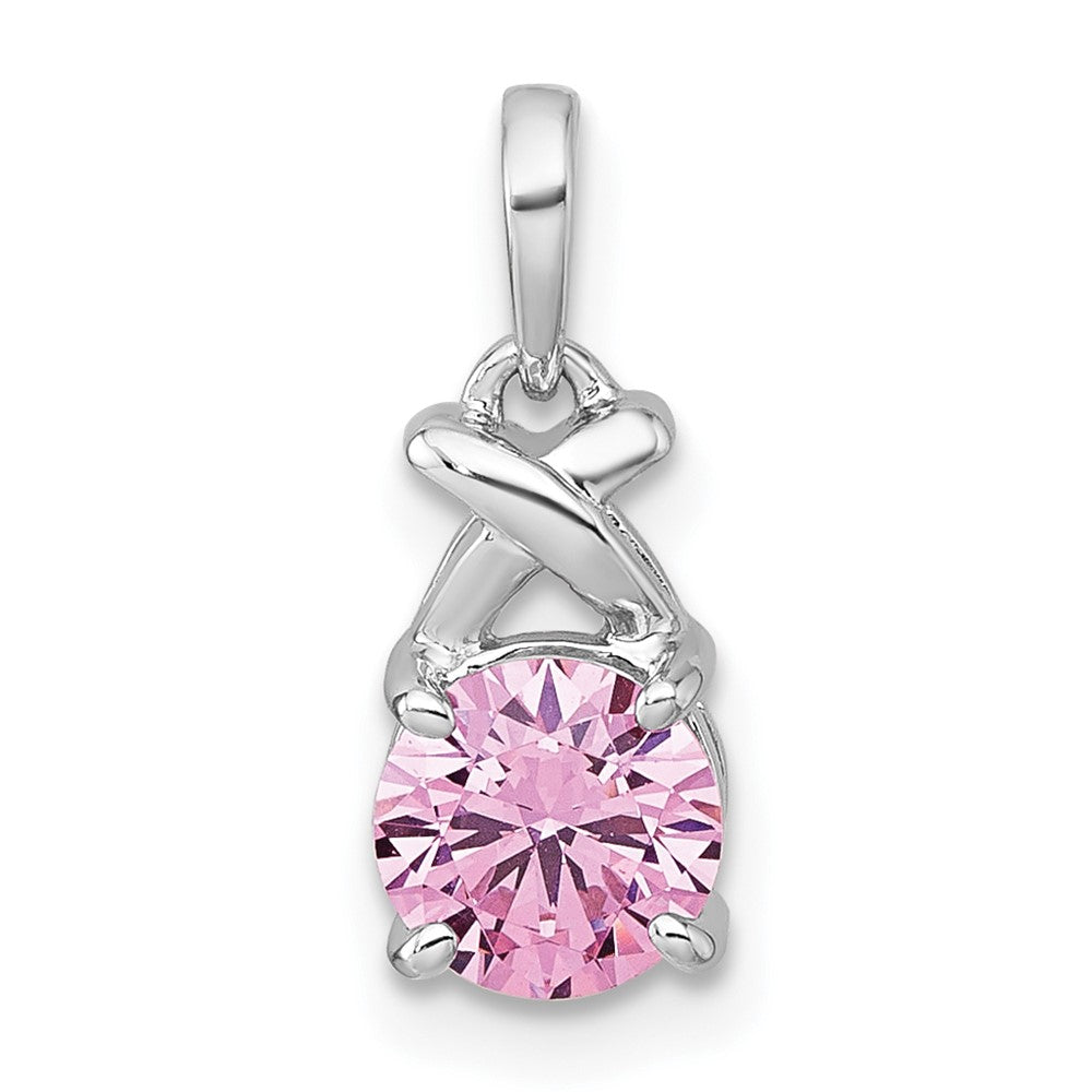 Sterling Silver Rhodium-plated Polished Round Pink CZ -X- Pendant