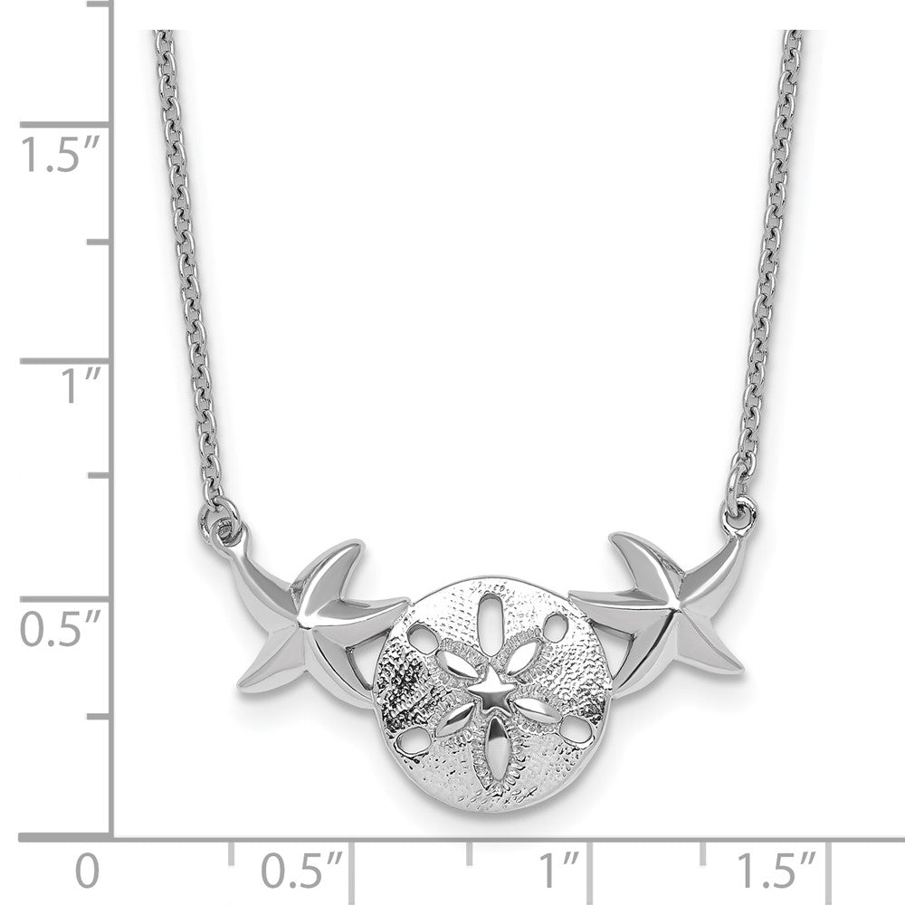Sterling Silver Rhodium-Plated Polished Sand Dollar and Starfish 16. with a extention Necklace