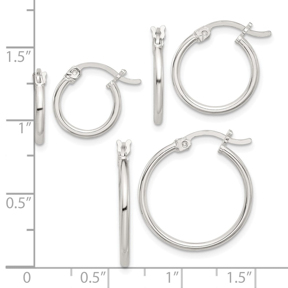 Sterling Silver Rhodium-plated Polished Set of 3 Hoop Earring Set