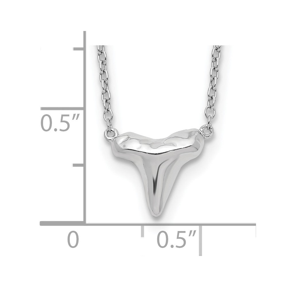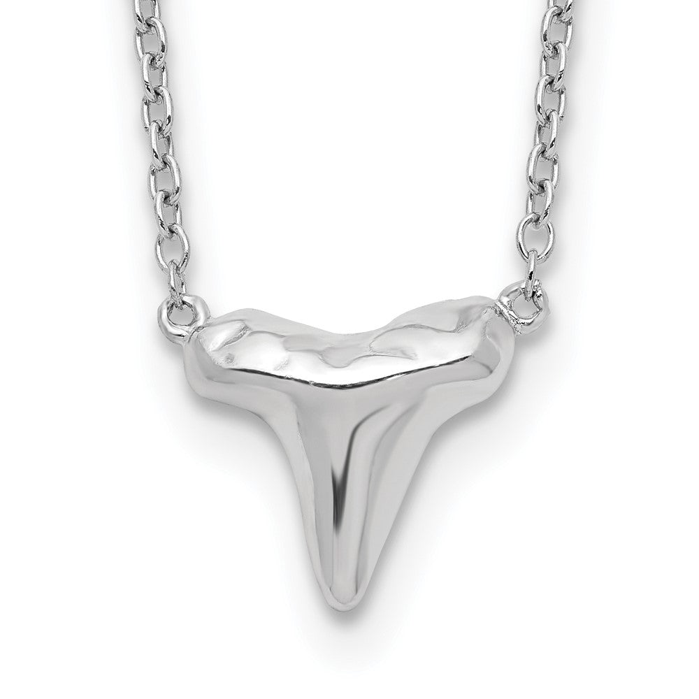 Sterling Silver Rhodium-plated Polished Shark Tooth with a extention Necklace