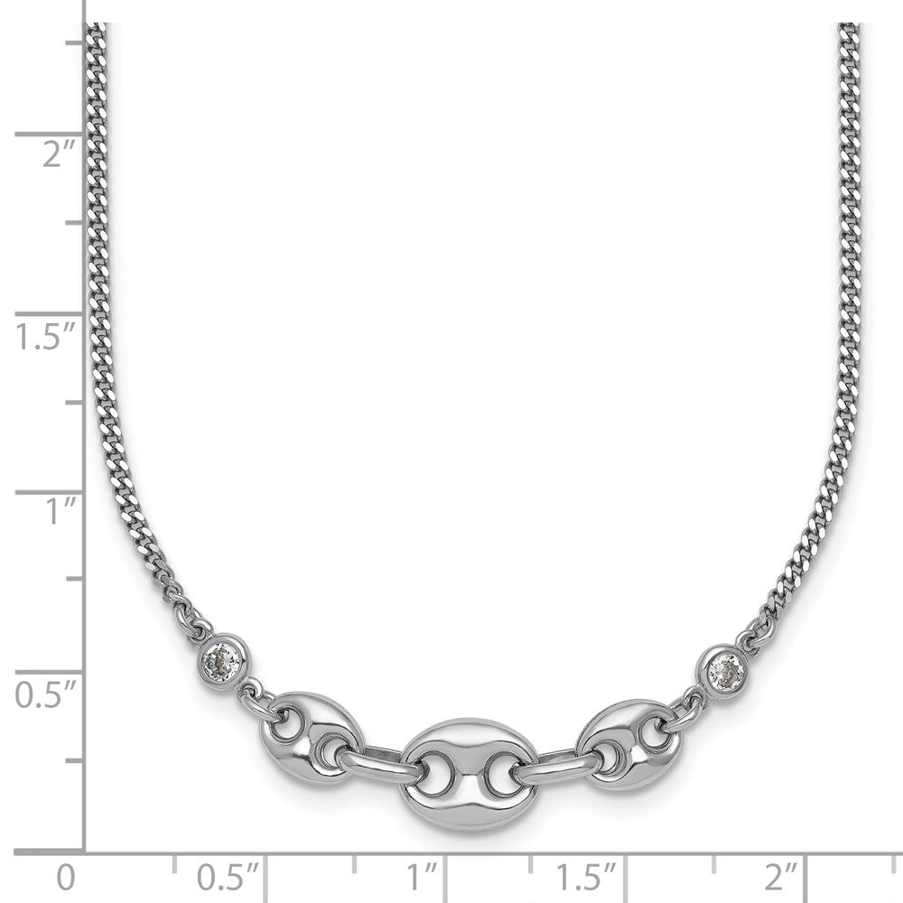 Sterling Silver Rhodium-plated Puffed Mariner Center with Side CZs with Extender Necklace