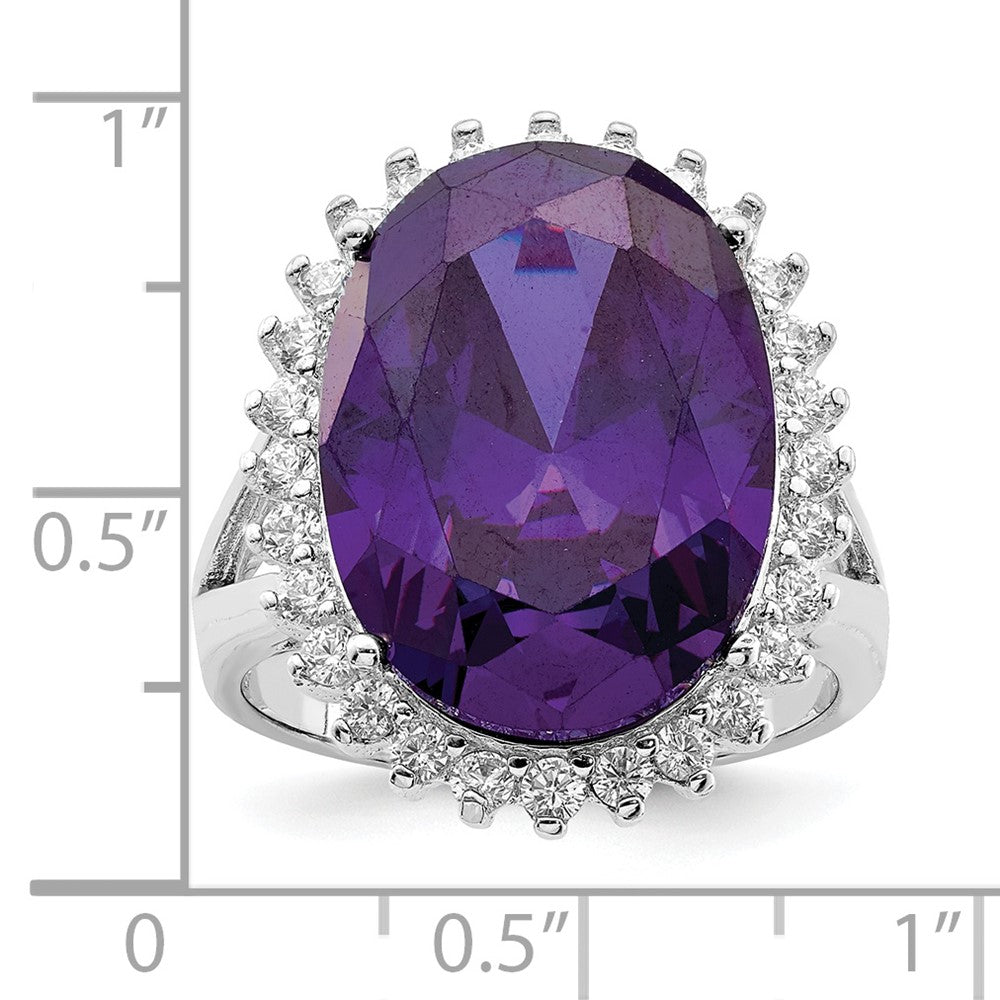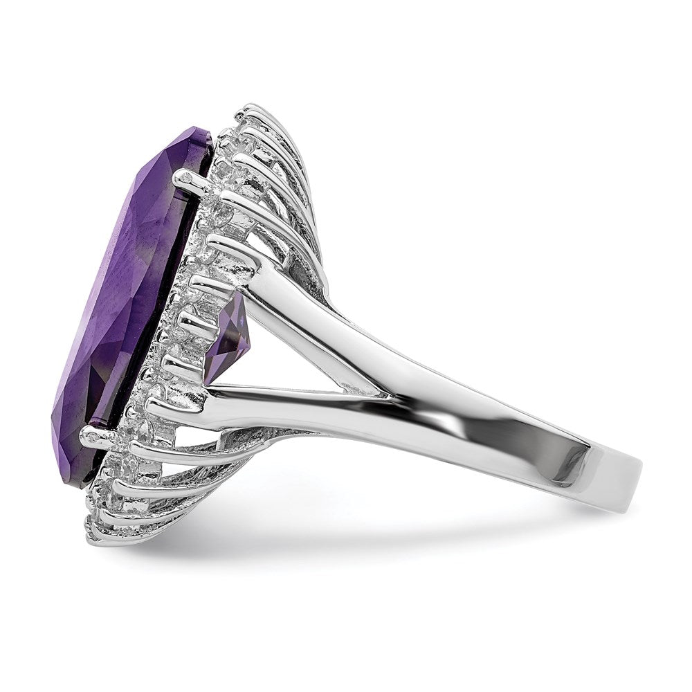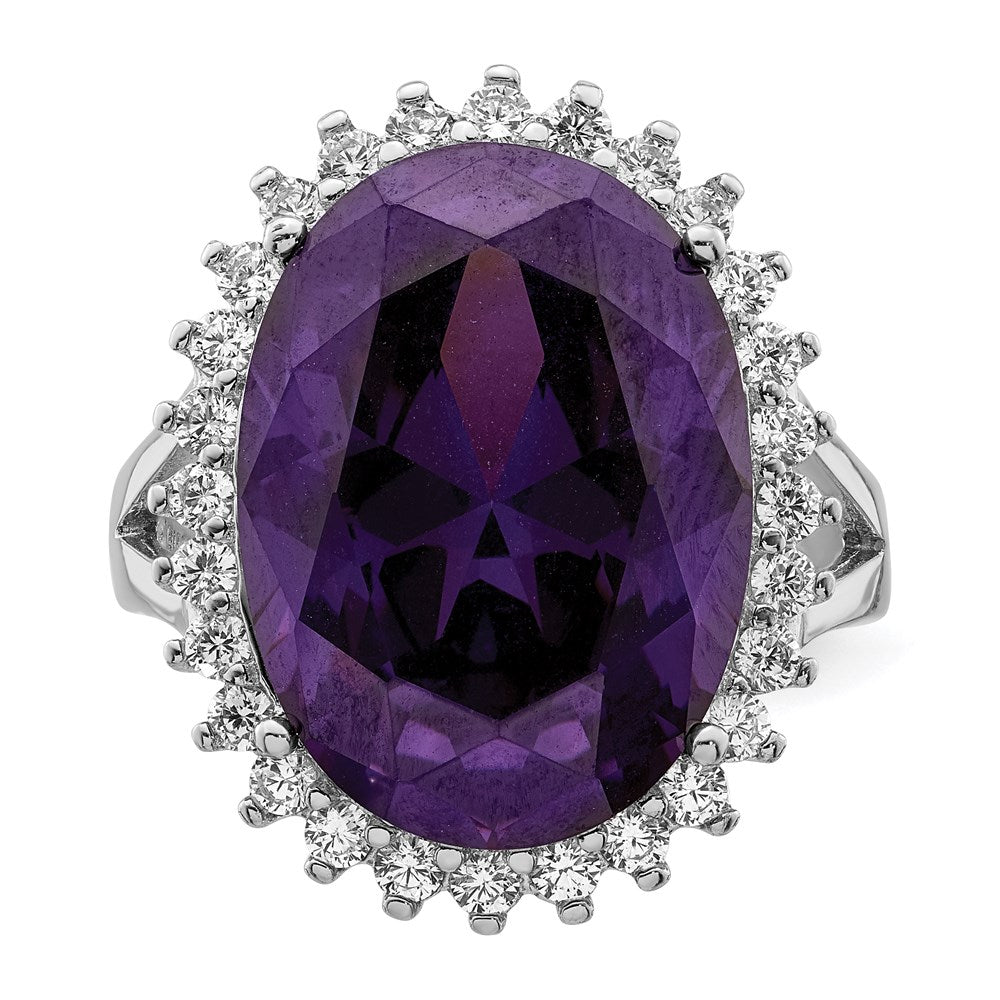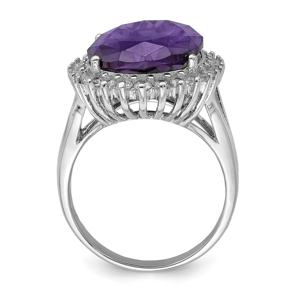 Sterling Silver Rhodium-plated Purple & Clear CZ Ring