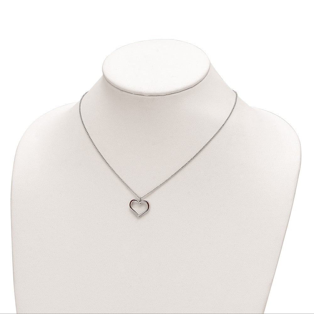 Sterling Silver Rhodium Plated Red Enamel Heart Adjustable Necklace with1 inch extension