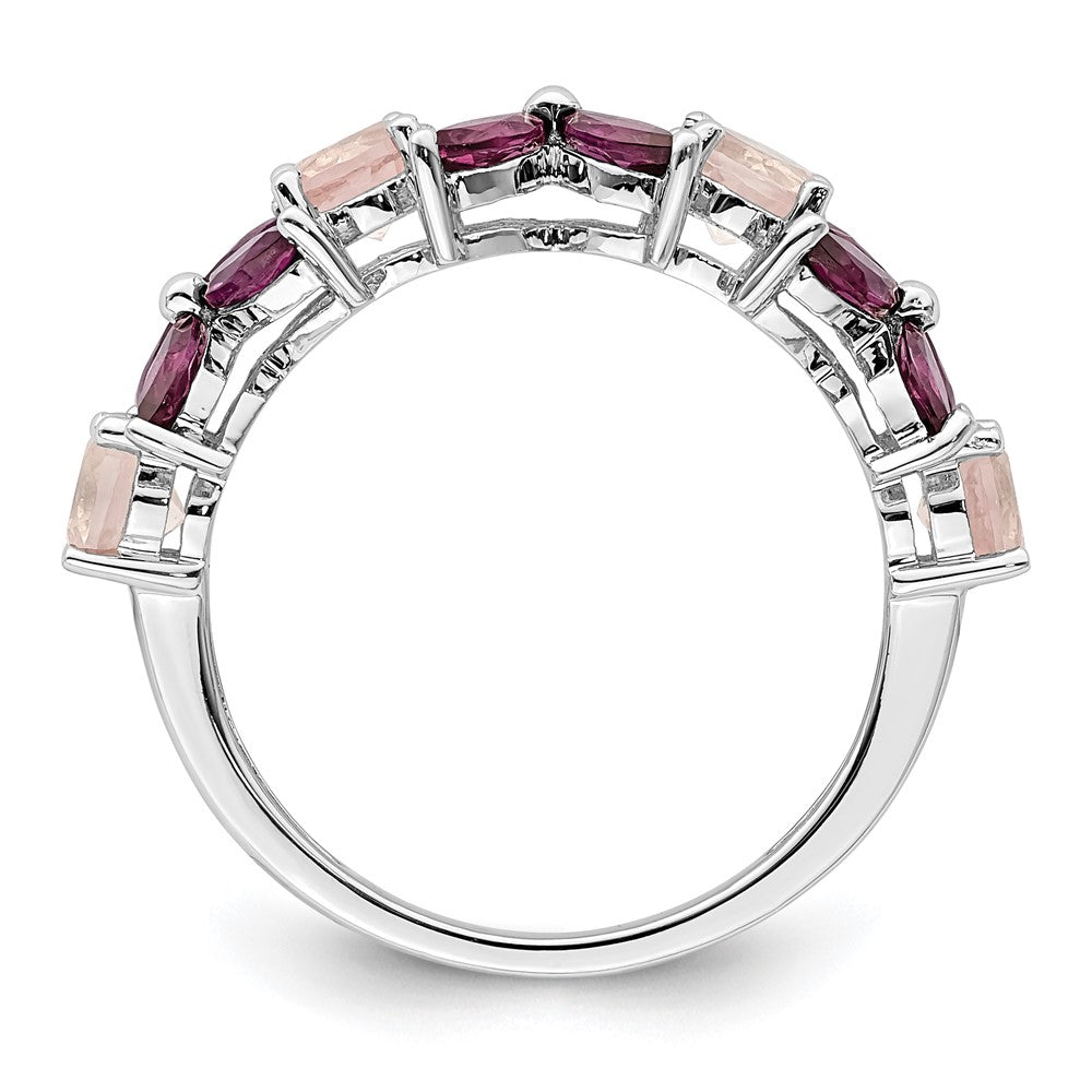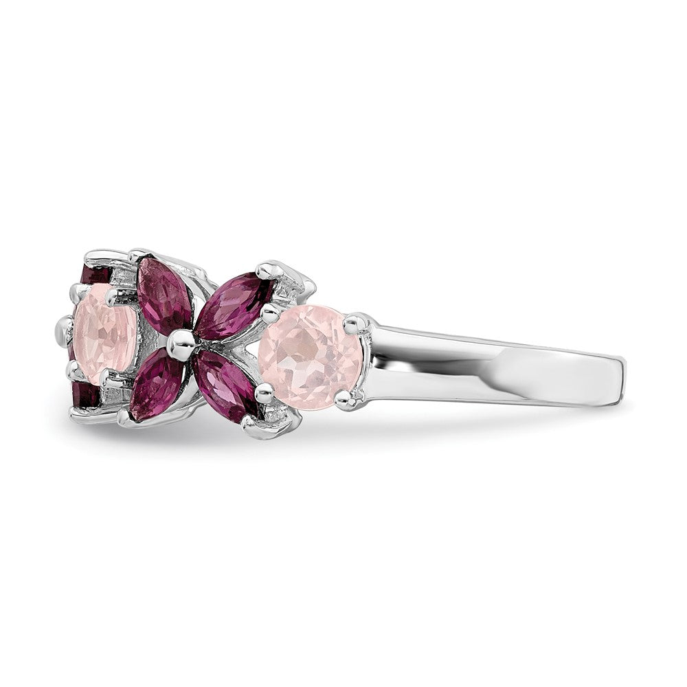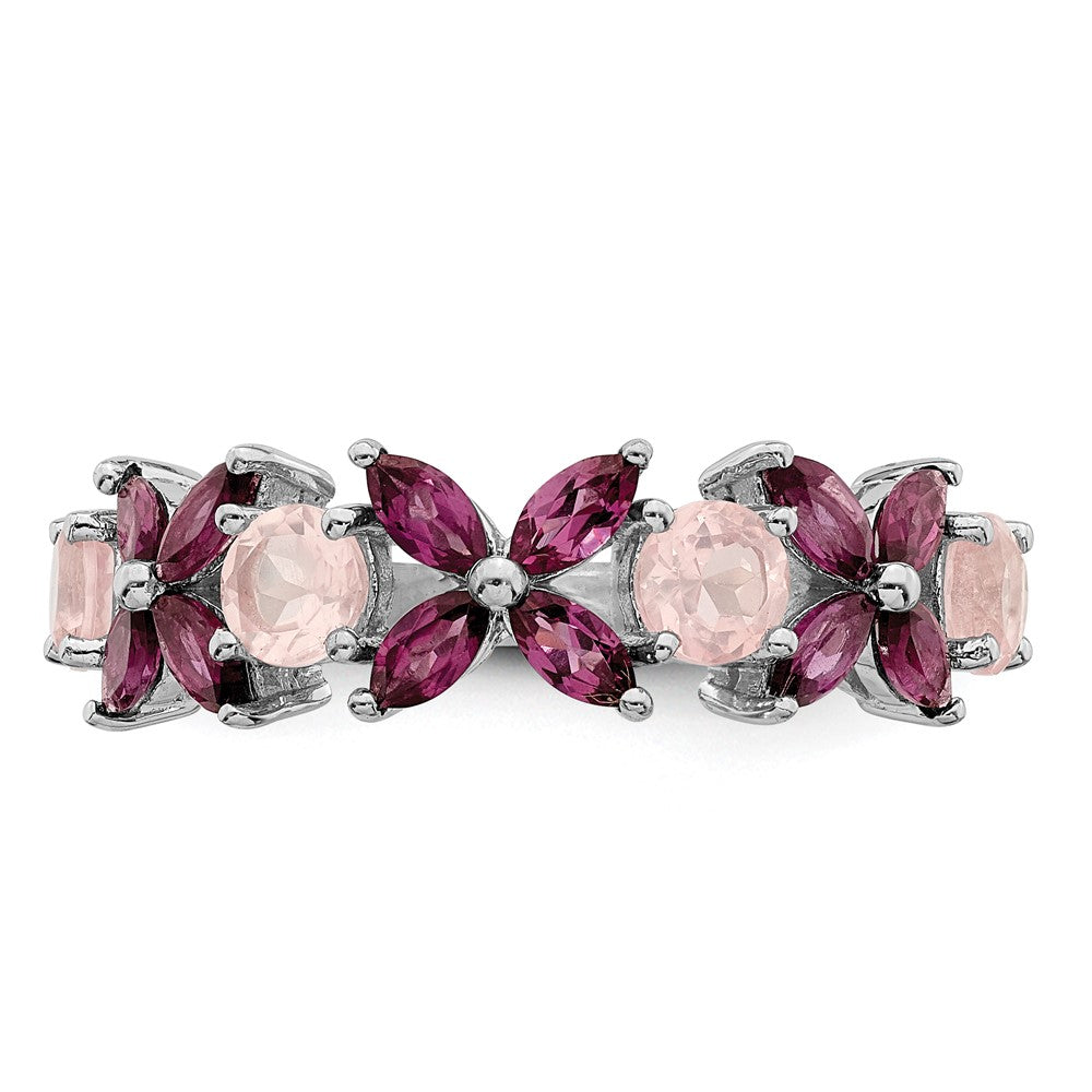 Sterling Silver Rhodium-plated Rose Quartz & Rhodolite Ring