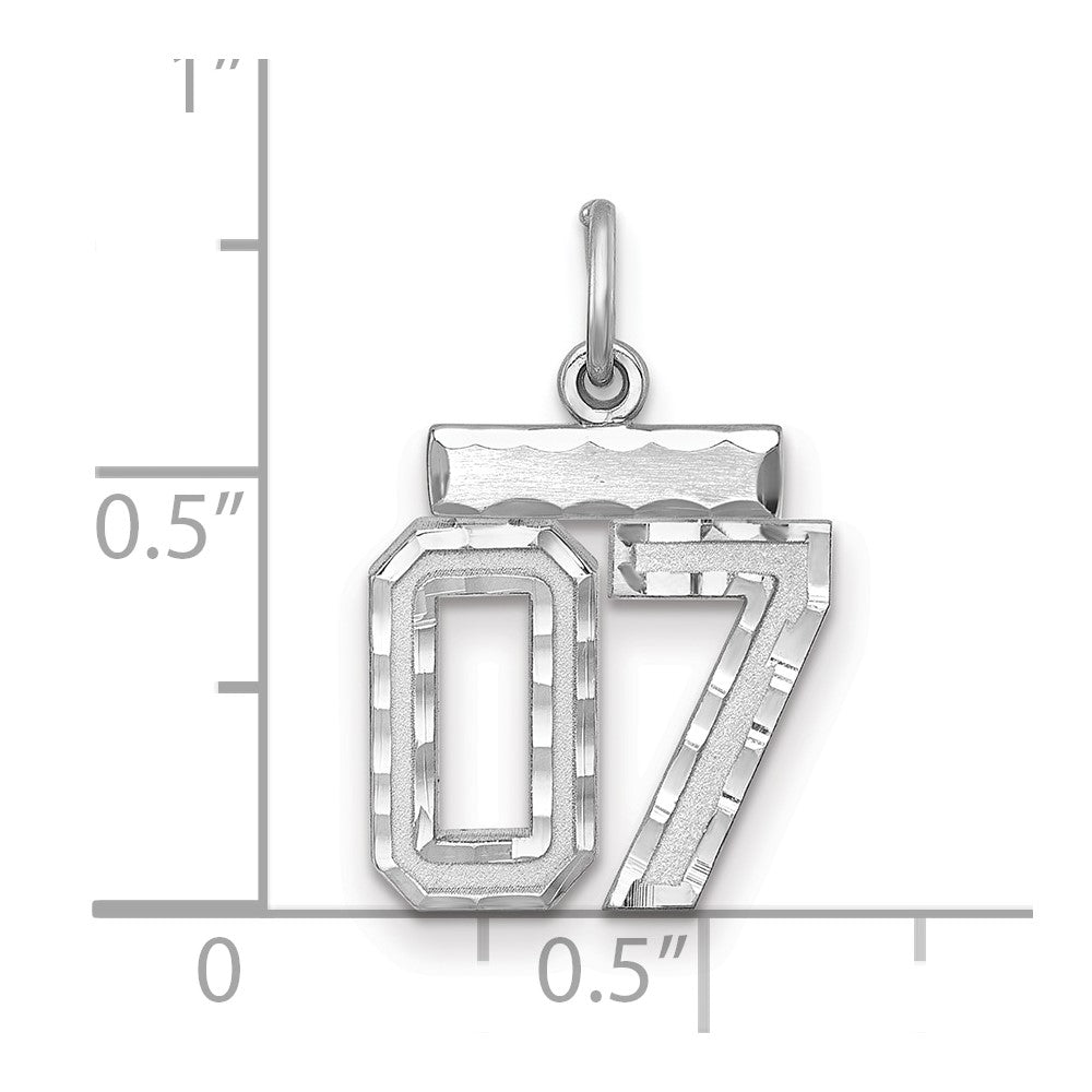 Sterling Silver Rhodium-plated Small Diamond-cut #07 Charm