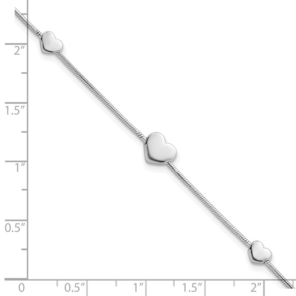 Sterling Silver Rhodium-plated Three Hearts with Extension Bracelet