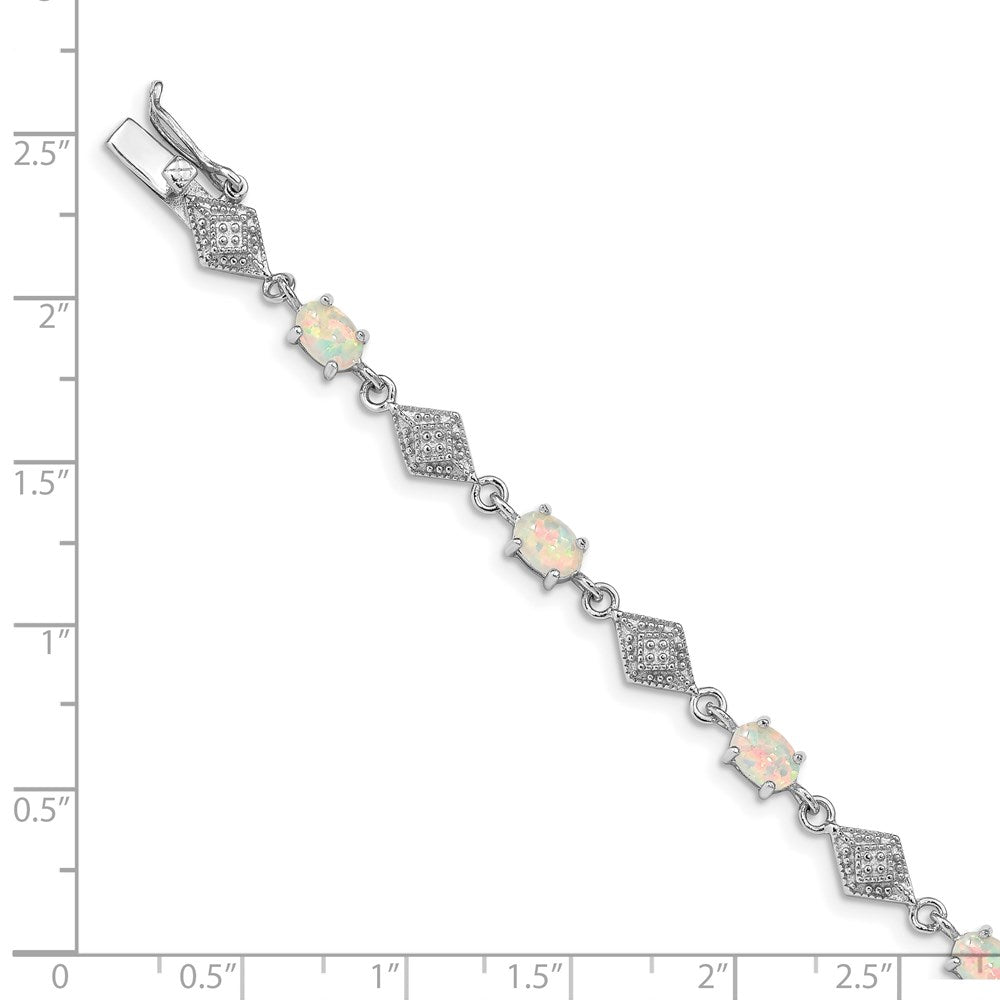 Sterling Silver Rhodium-plated White Created Opal and CZ Bracelet