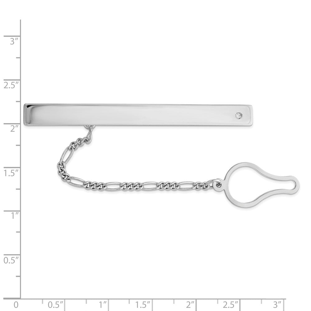 Sterling Silver Rhodium Plated with CZ Tie Clip
