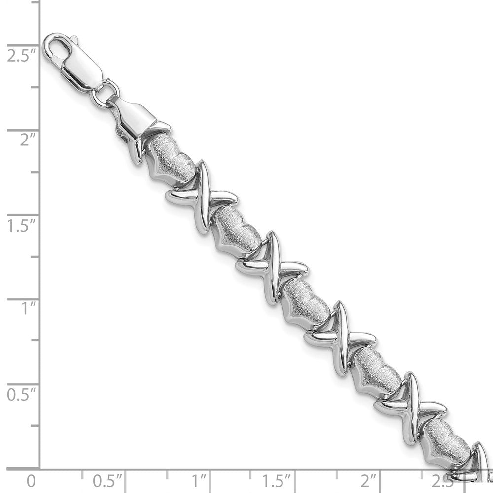 Sterling Silver Rhodium Polished and Brushed X's and Hearts Bracelet