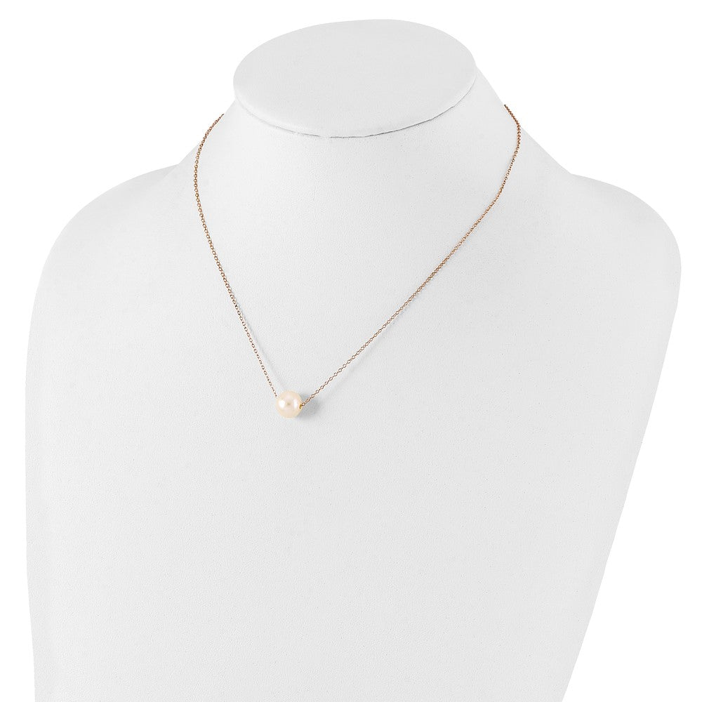 Sterling Silver Rose-tone 10-11mm White Near-Round Freshwater Cultured Pearl 17 inch Necklace