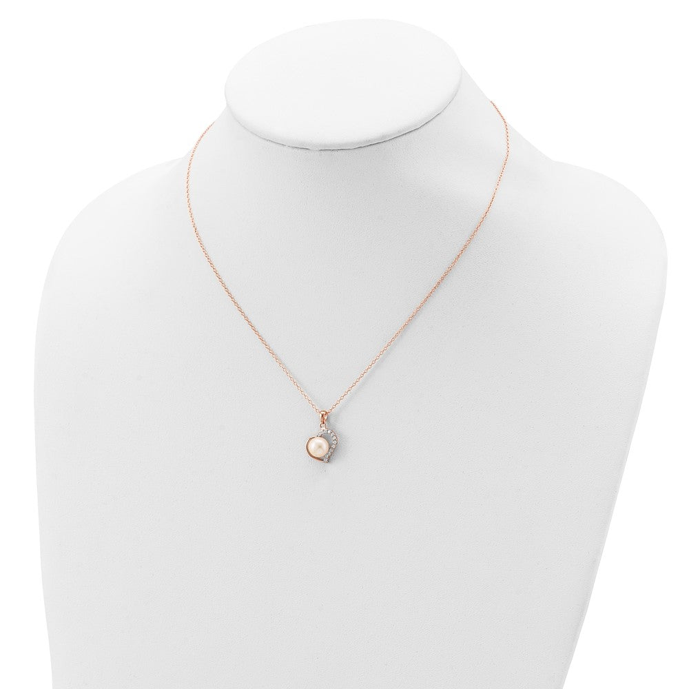 Sterling Silver Rose-tone 18k Flash Gold-plated 7- Button Freshwater Cultured Pearl Heart Necklace