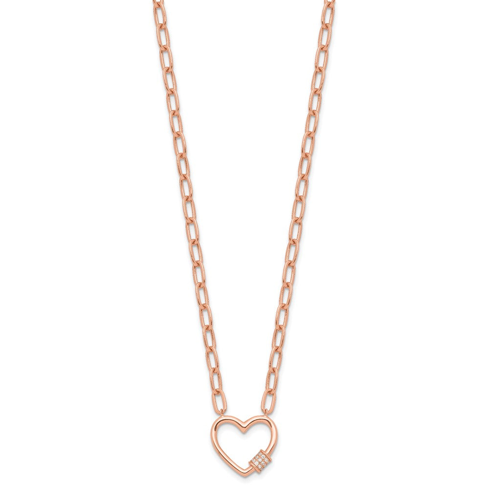 Sterling Silver Rose-tone CZ Heart Paper Clip with 2in ext. Necklace