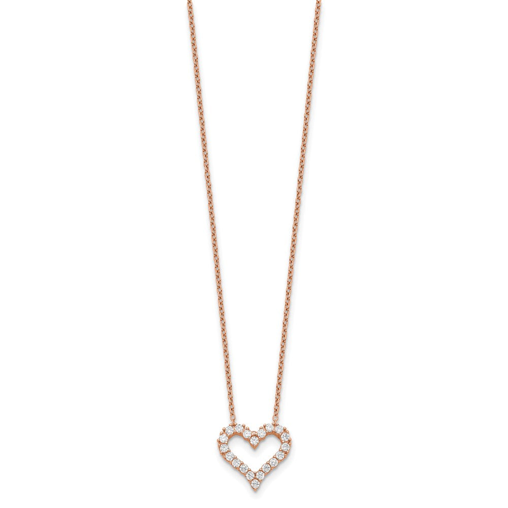 Sterling Silver Rose-tone CZ Heart w/ 2in ext. Necklace