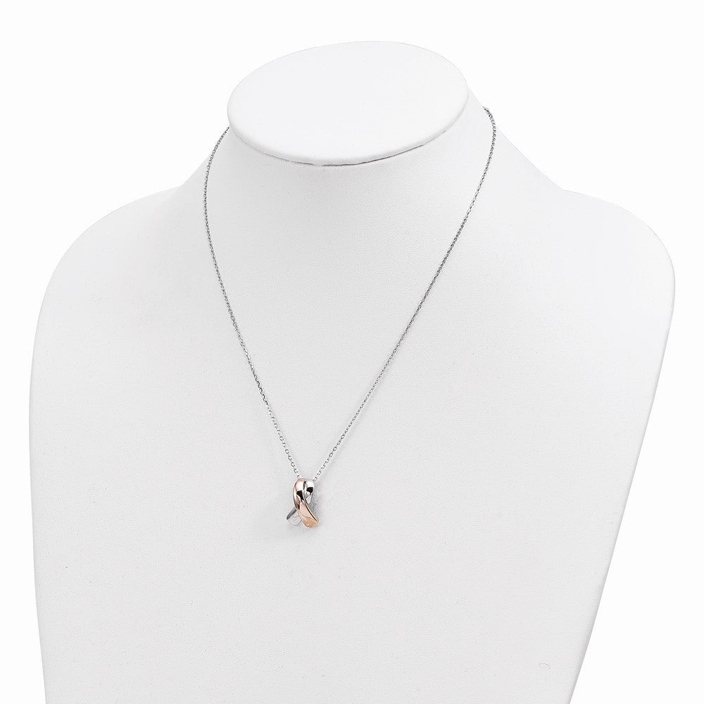 Sterling Silver Rose-tone Polished Awareness Ribbon w/2in ext. Necklace