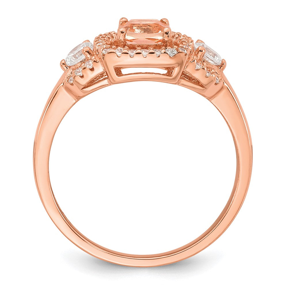 Sterling Silver Rose-tone Polished Fancy Pink CZ Halo Size 6 Ring