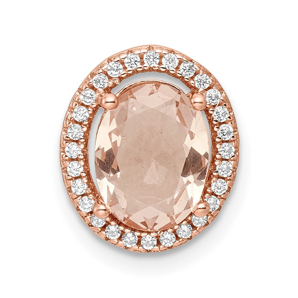 Sterling Silver Rose-tone Polished Pink & White CZ Oval Chain Slide