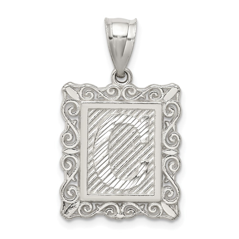 Sterling Silver Square Diamond-cut Letter C Initial Pendant