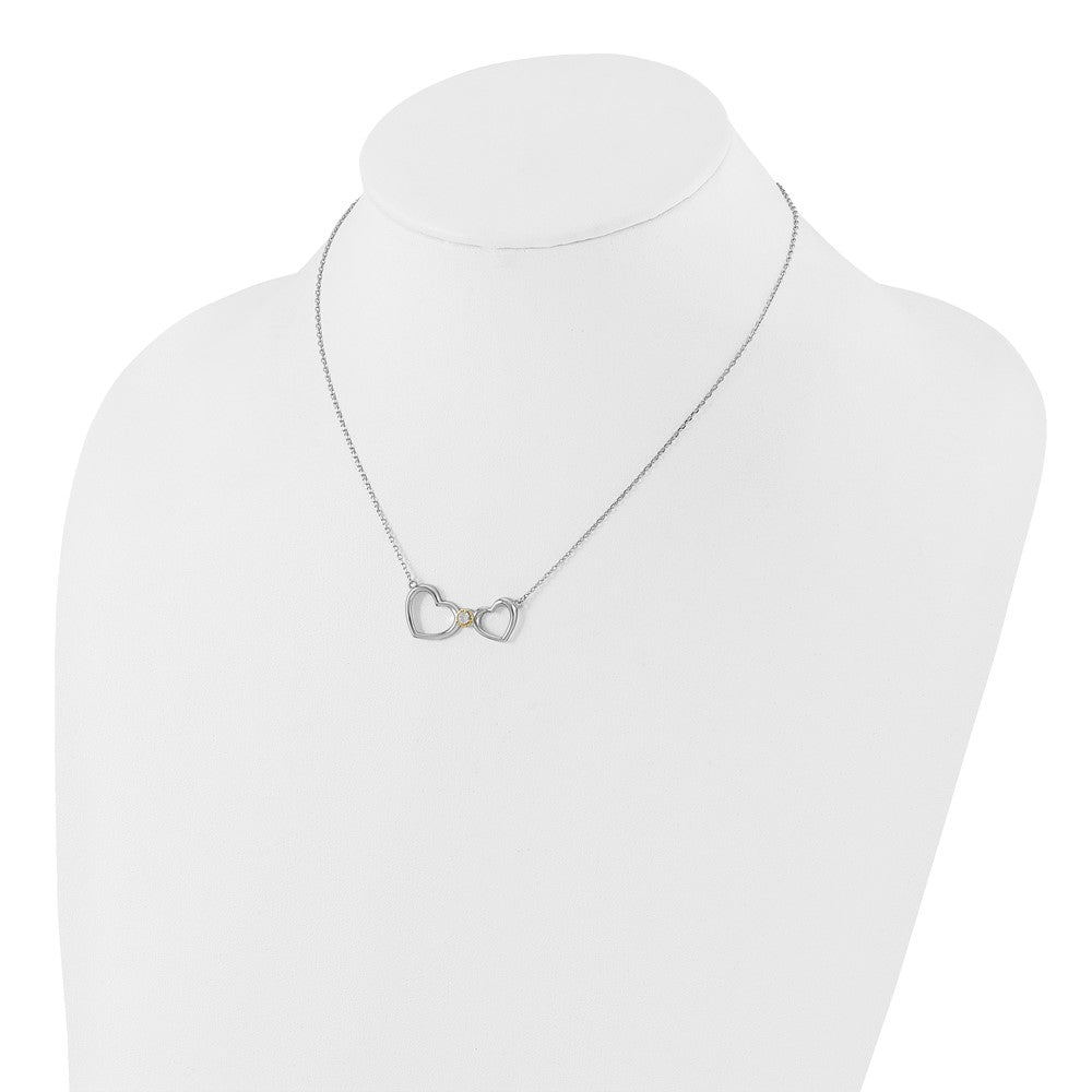 Sterling Silver w/14k accent Rh-plated CZ Heart w/50.8 mm. ext Necklace