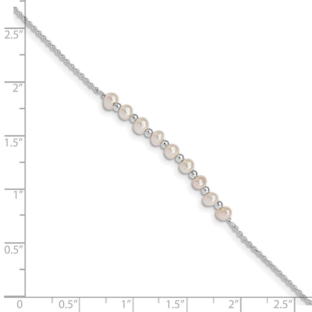 Sterling Silver White Semi-round Freshwater Cultured Pearl Bracelet