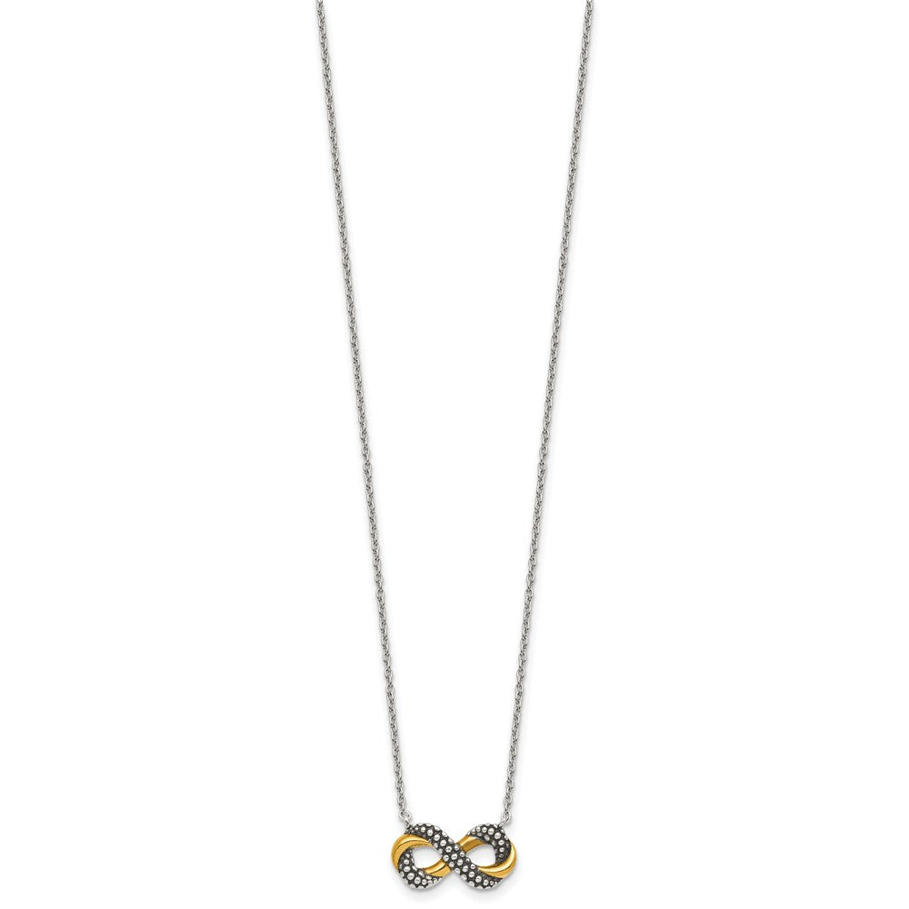 Sterling Silver with Gold-tone Polished and Antiqued Beaded Infinity Charm Necklace