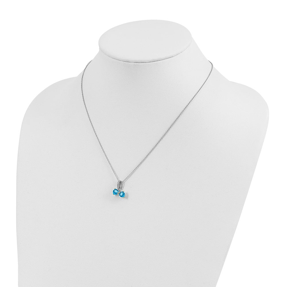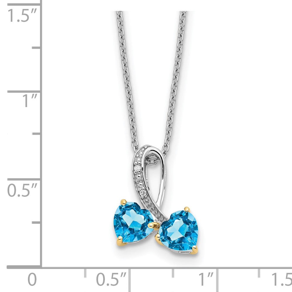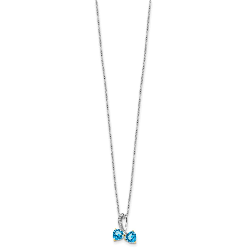 Sterling Silver/14k RH-plated Bl Topaz/Diamond Heart 18in w/2in ext Necklac
