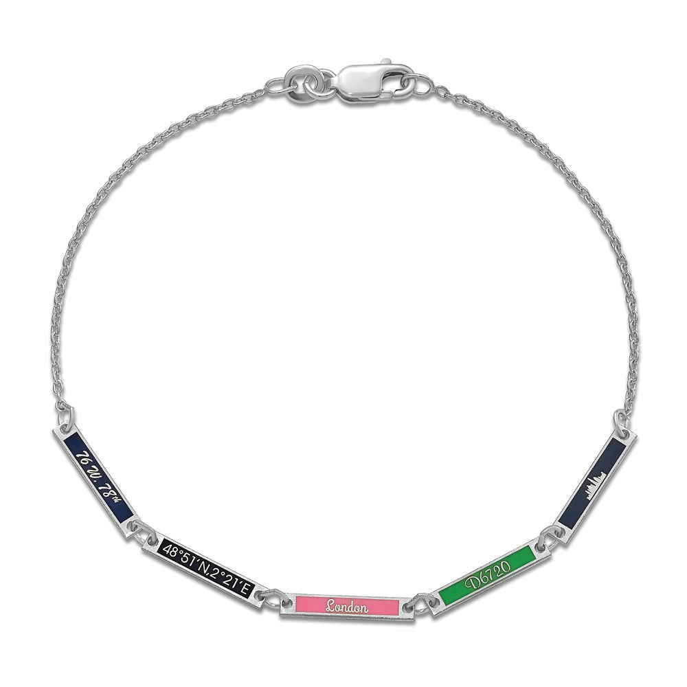 Sterling Silver/Rhodium-plated Brushed 5 Station w/Epoxy Bracelet