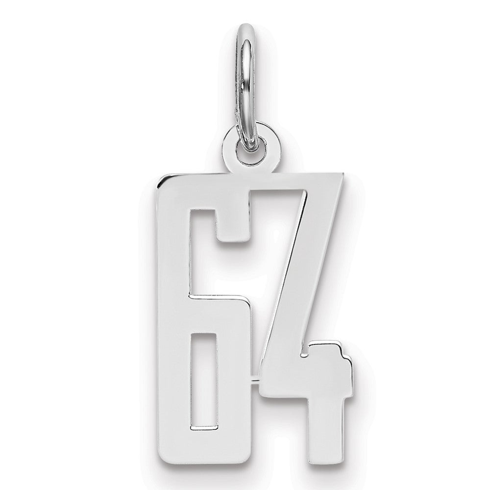 Sterling Silver/Rhodium-plated Elongated Number 64 Charm