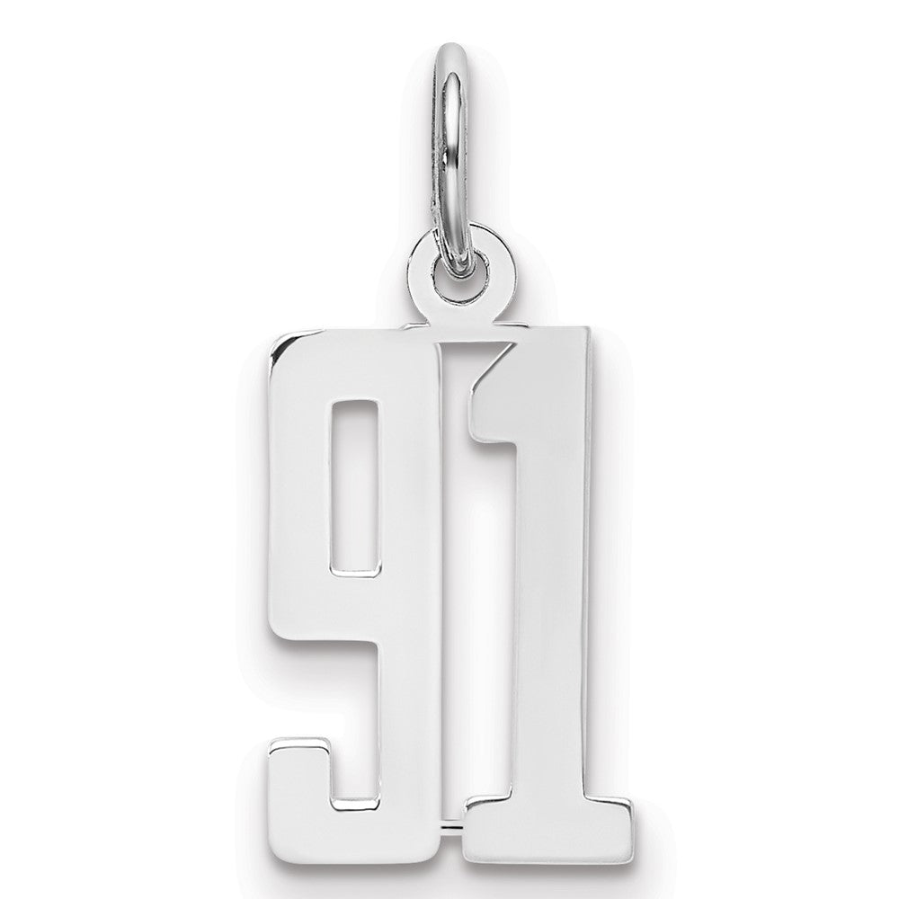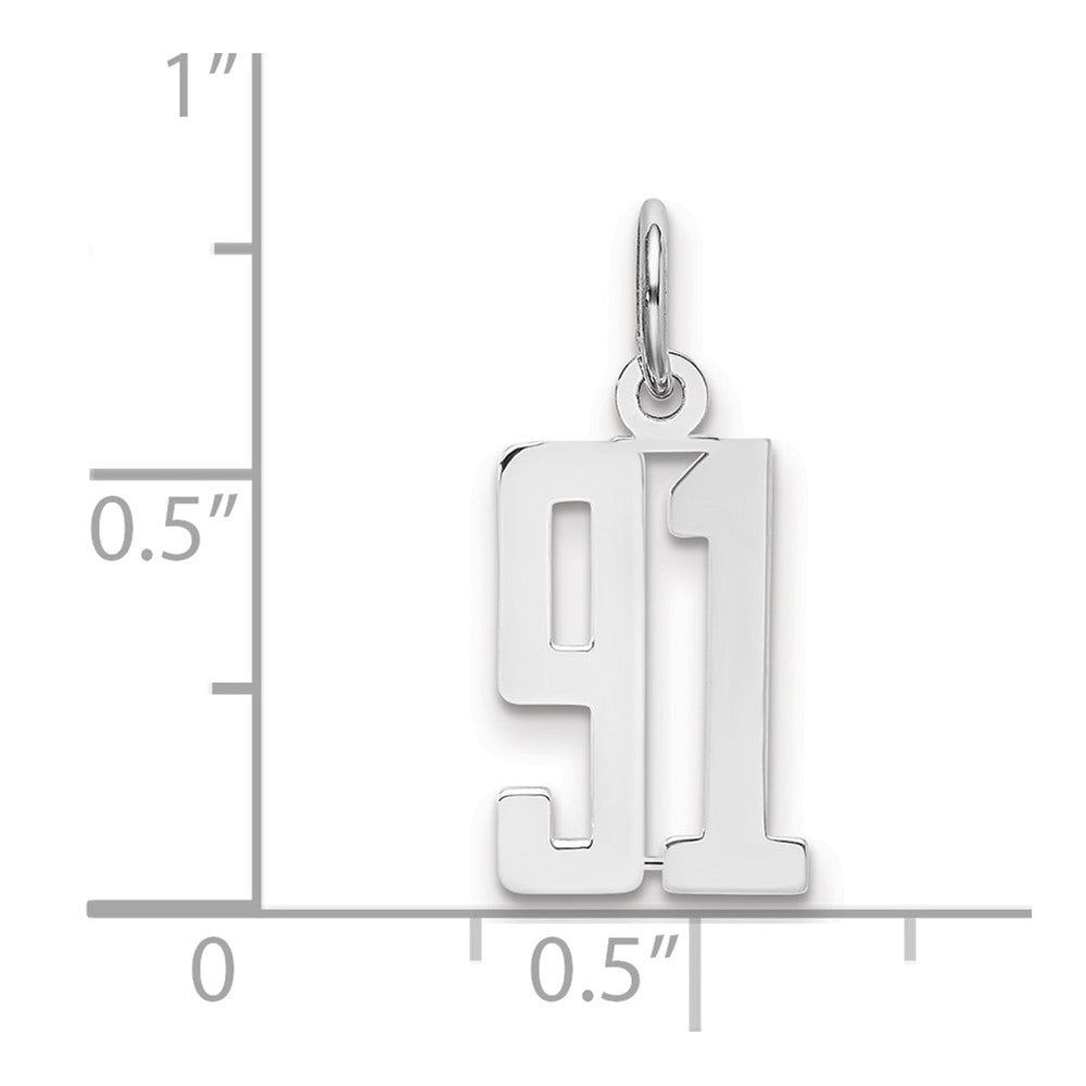 Sterling Silver/Rhodium-plated Elongated Number 91 Charm