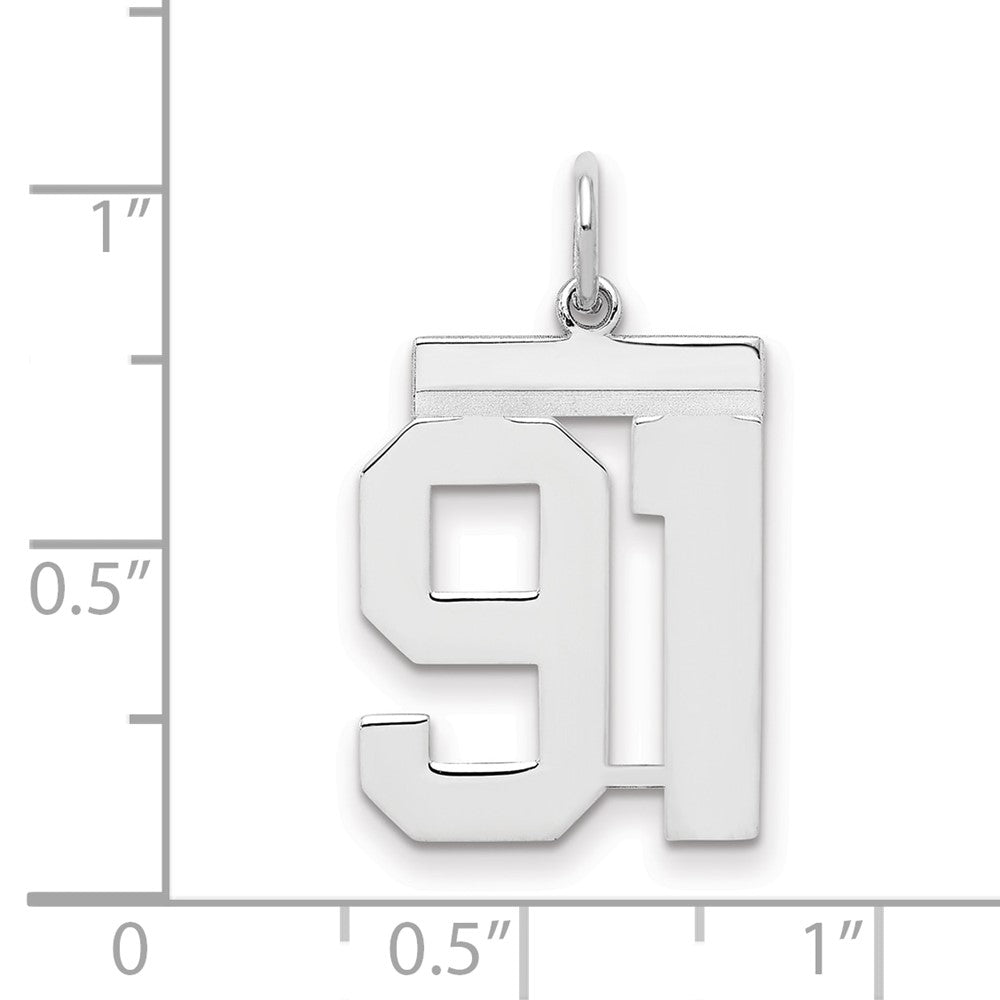 Sterling/Silver Rhodium-plated Polished Number 91 Charm