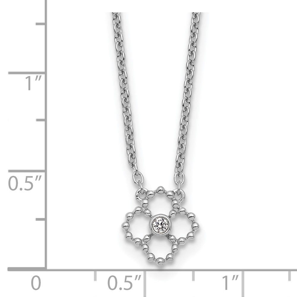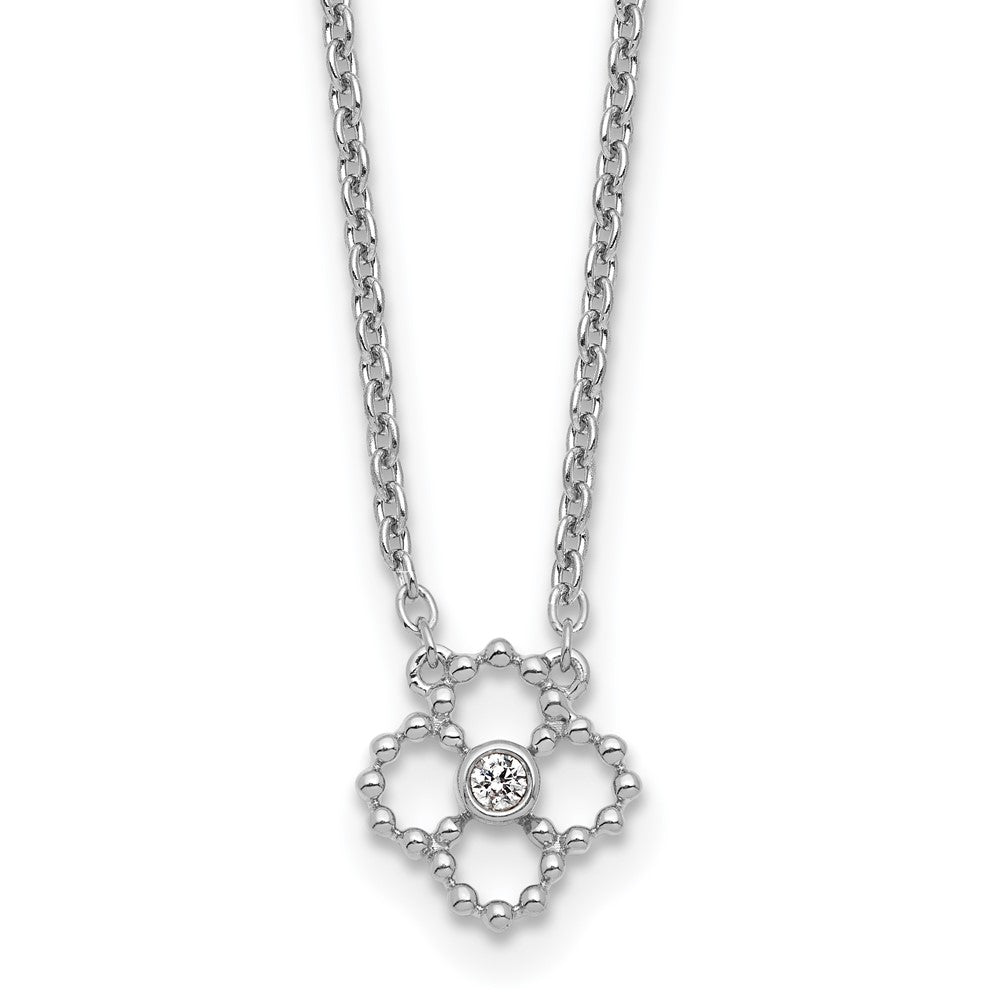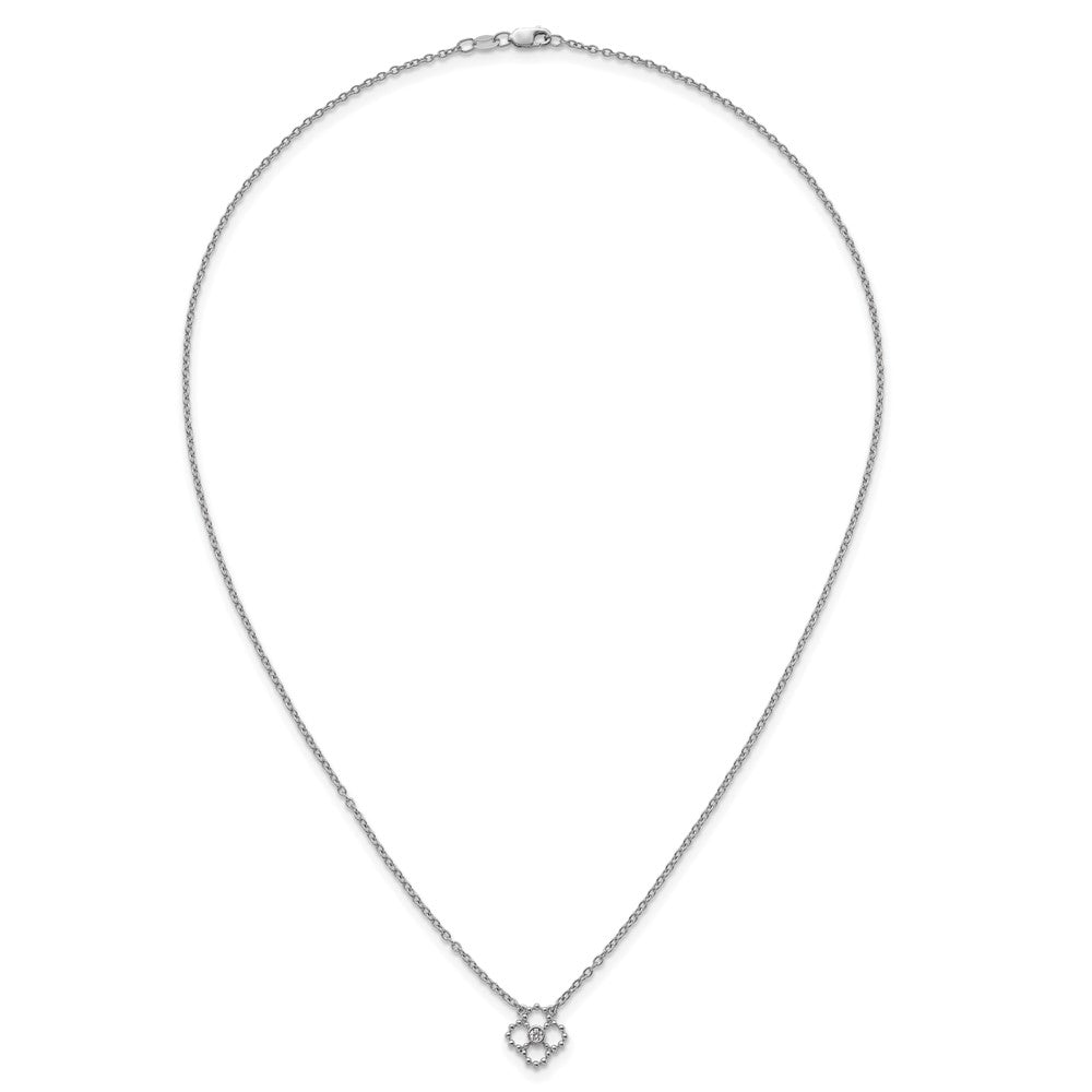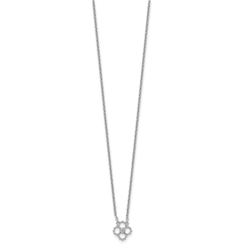 White Ice Sterling Silver Rhodium Plated Beaded Diamond Quatrefoil 18in Necklace plus 2 in Extender