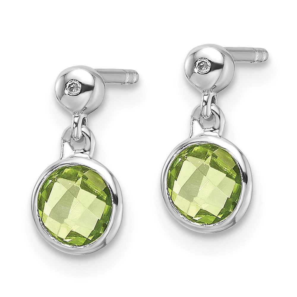 White Ice Sterling Silver Rhodium-plated Diamond and Peridot Post Dangle Earrings