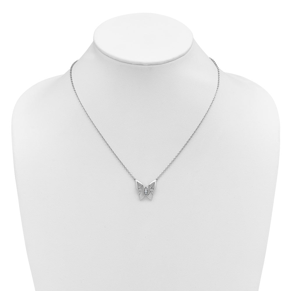 White Ice Sterling Silver Rhodium-plated Diamond Butterfly Necklace plus Extender
