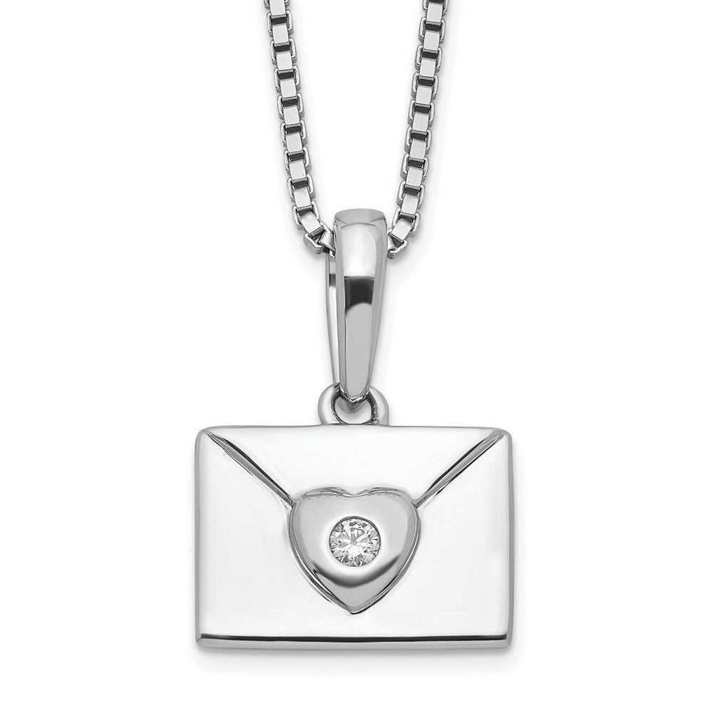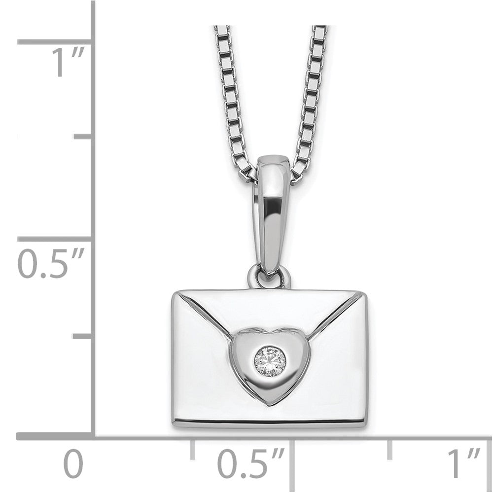 White Ice Sterling Silver Rhodium-plated Diamond Heart Envelope Necklace with Extender