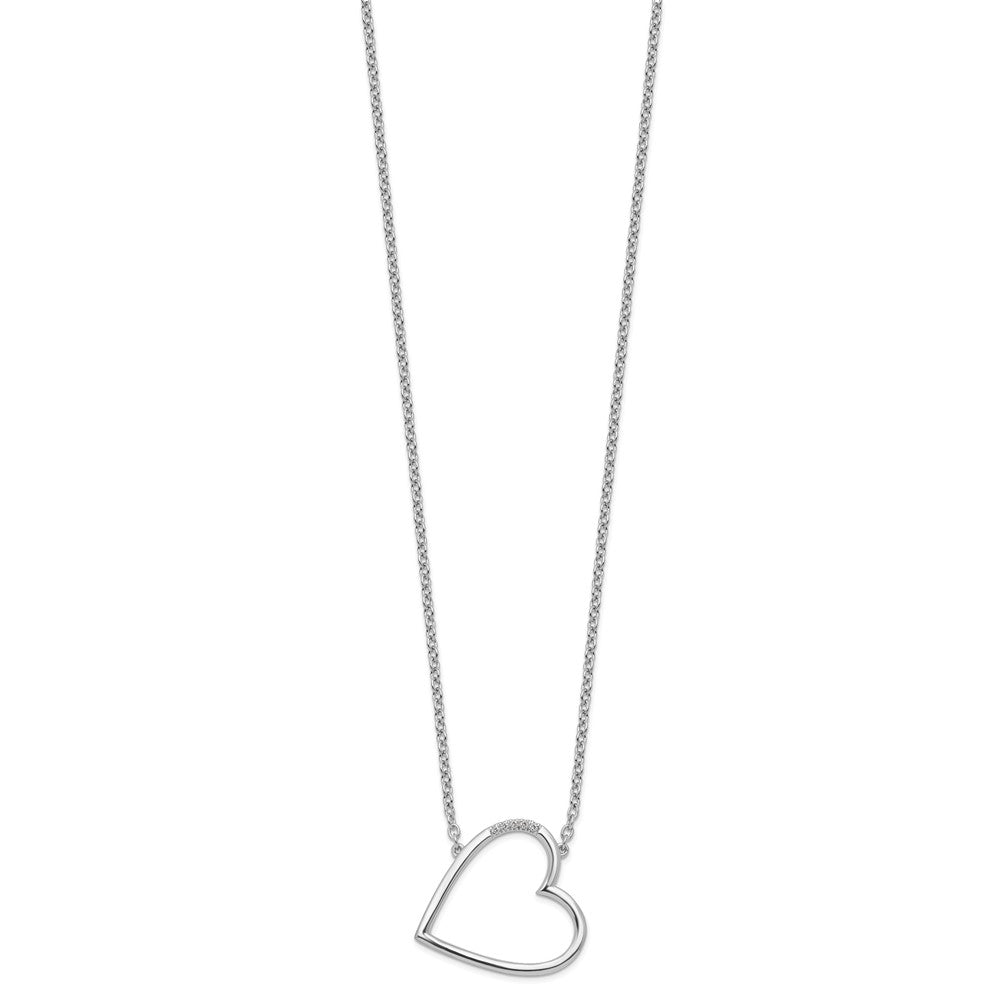 White Ice Sterling Silver Rhodium-plated Diamond Sideways Open Heart Necklace
