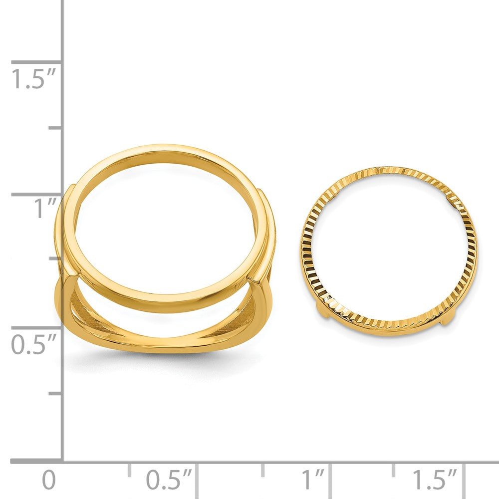 Wideband Distinguished Coin Jewelry 14k Ladies' Polished and Diamond-cut Coin Bezel Ring