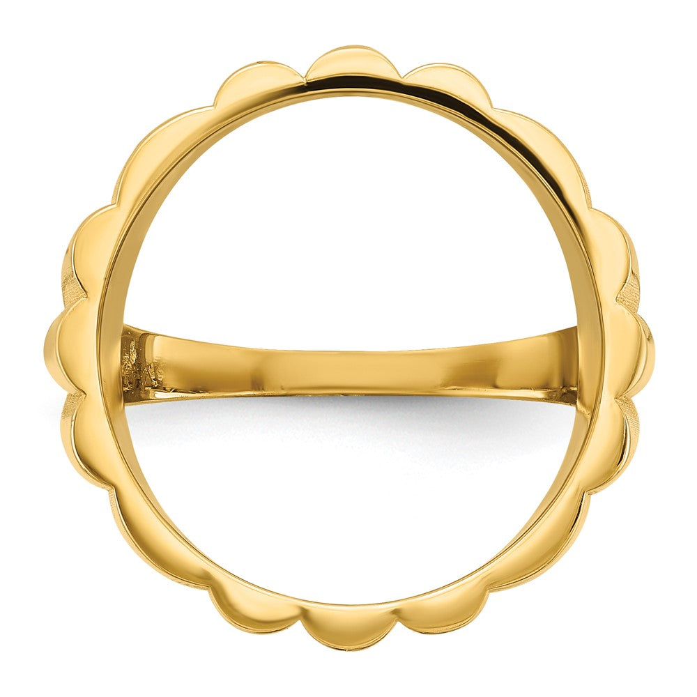 Wideband Distinguished Coin Jewelry 14k Ladies' Polished and Diamond-cut Fluted Coin Bezel Ring