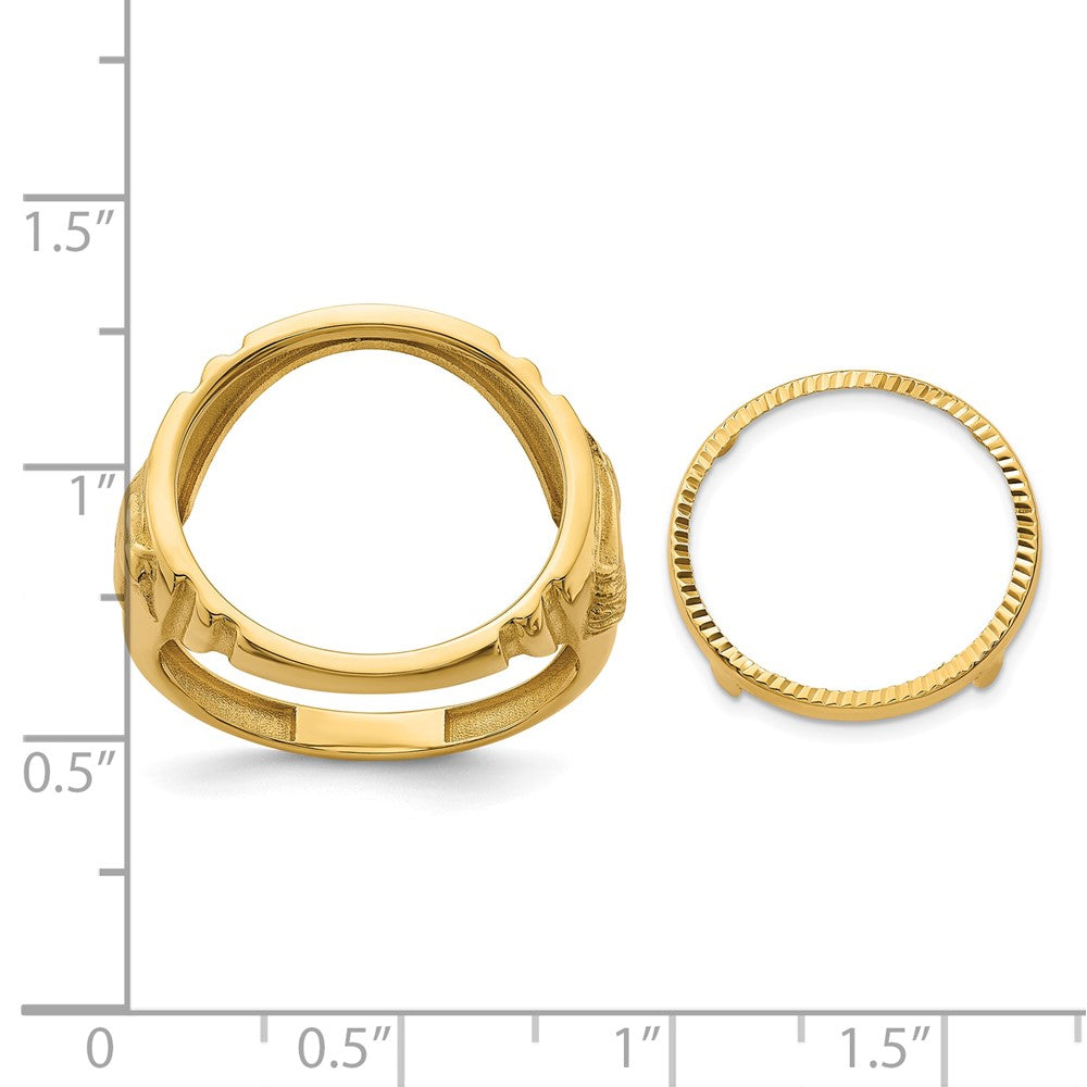 Wideband Distinguished Coin Jewelry 14k Men's Polished and Diamond-cut with Horse Sides Coin Bezel Ring