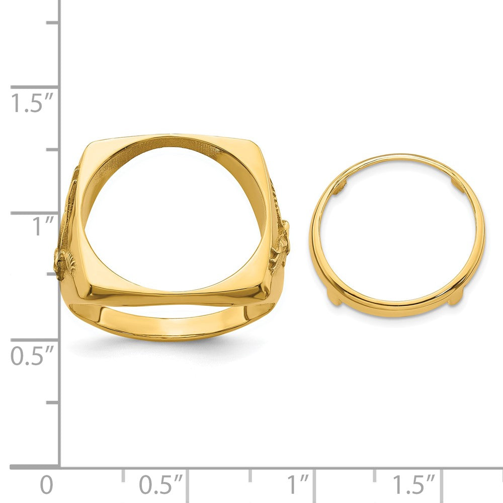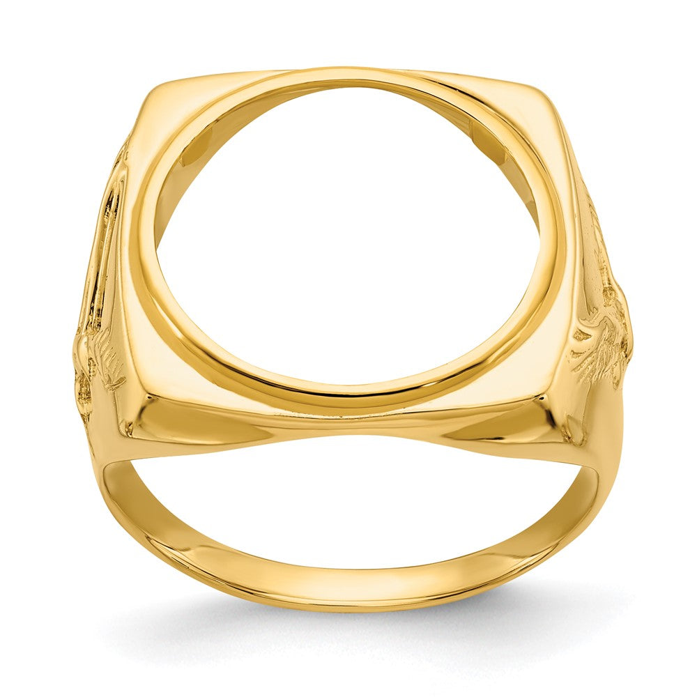 Wideband Distinguished Coin Jewelry 14k Men's Polished with Flying Eagle Side Square Shaped Coin Bezel Ring